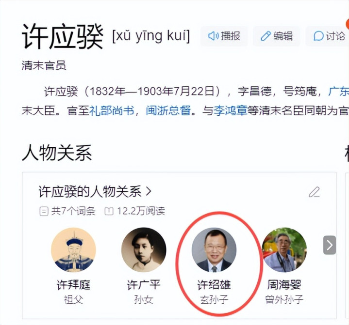 据悉,许绍雄的太公(爷爷的爸爸)名为许应骙,曾是清朝光绪年间的礼部尚书、闽浙总督,拥有在在紫禁城骑马的特权,虽然许绍雄的太公和慈禧没有血缘关系,但却是慈禧的干儿子。