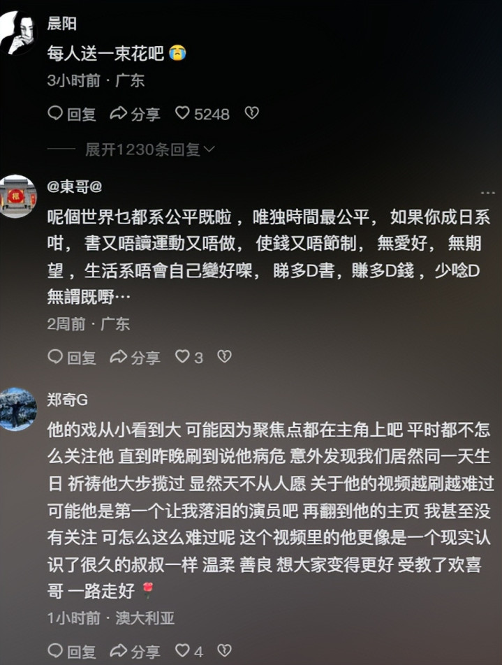 没想到欢喜哥到了人生最后时刻,都不忘给观众、给后辈们留下几句人生格言,证明他是有大爱的。
