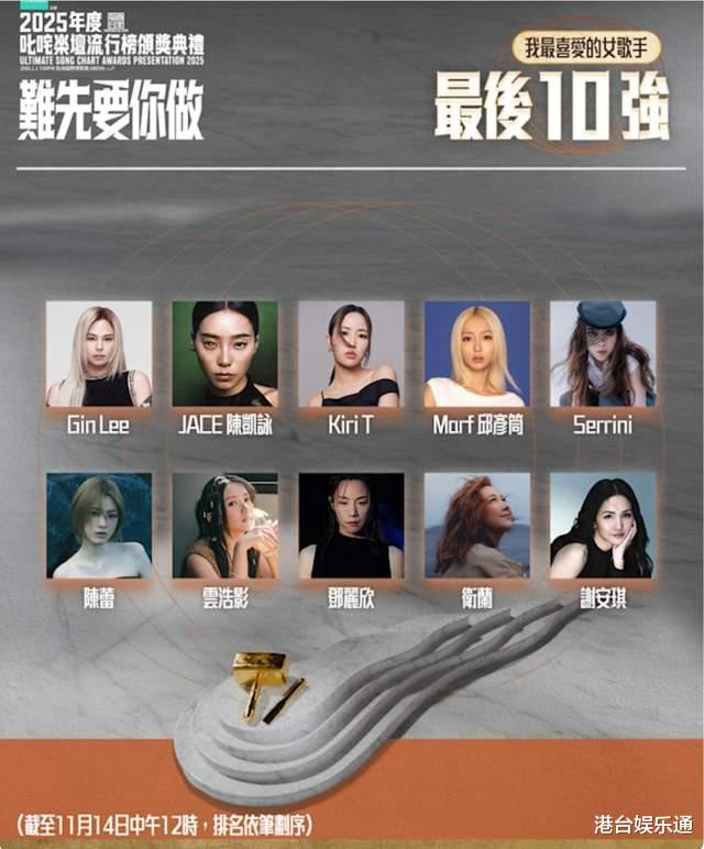 11月14日,香港商业电台在社交平台发布了《叱咤乐坛流行榜颁奖典礼2025》“我最喜爱”系列奖项(人气奖)的10强名单,引发当地网友热议。
